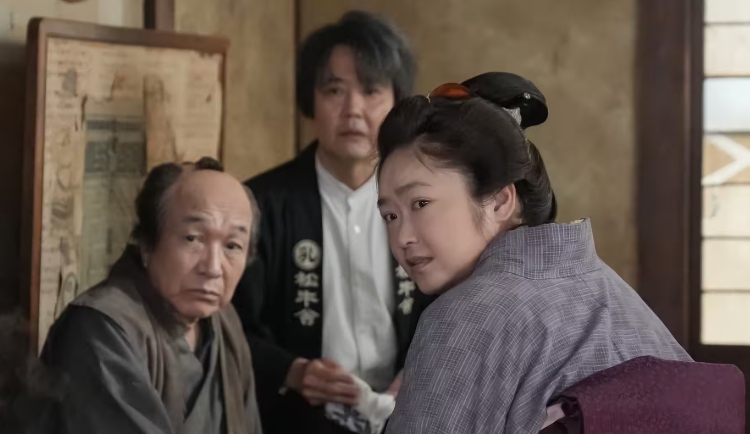 そこへ勘右衛門が出て来て、小谷をヘブンの生徒だと紹介すると、「何?ペリーの子分じゃと?」と、木刀を構える勘右衛門。