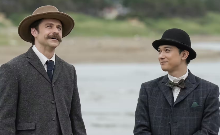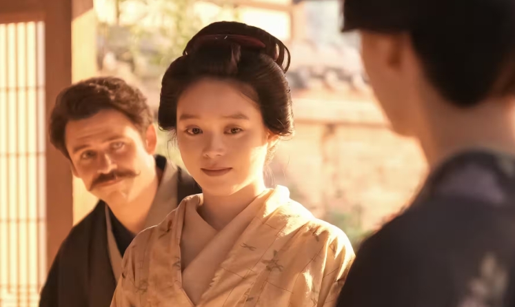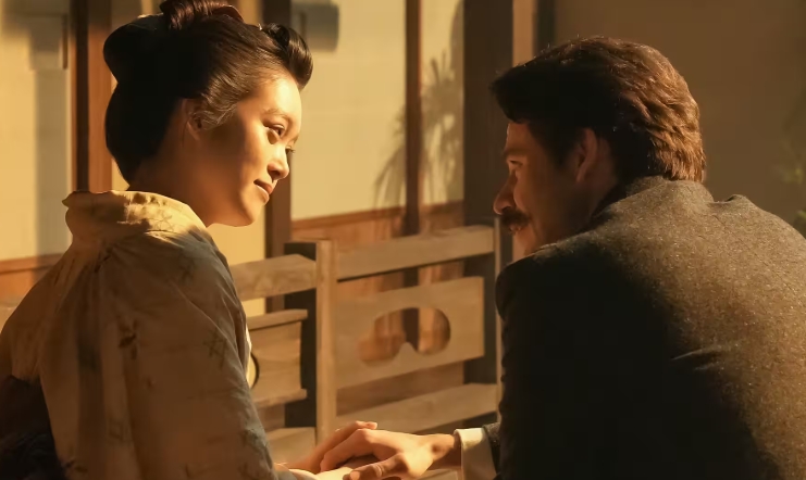 ヘブンは錦織と2人で、日本滞在記の最後の取材となる出雲にやってきました。ヘブンの好きな古事記の舞台を巡り、最後に稲佐の浜を散歩していると、トキがやって来ました。
