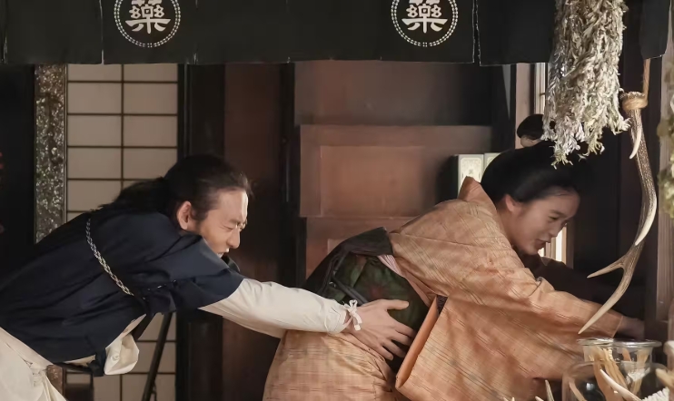県知事は自宅の庭に飾っていた「しゃちほこ」をヘブンの家の庭に飾り、喜ぶヘブン。集まっている人達に「ヘブン先生は日本の宝!」と太鼓判を押し帰って行きました。次は山橋薬舗の山橋才路でした。