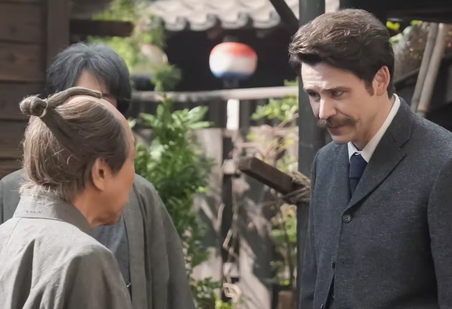 2人きりになったところで、「ウソは嫌いだと言っていましたよね。ではなぜ?」と錦織。ヘブンが黙っていると「ウソではなく、建て前、ですかね?」と錦織。ヘブンは黙ったまま。