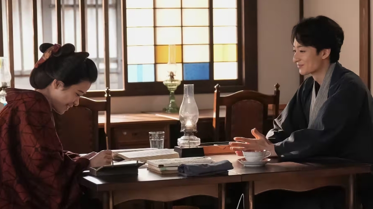 錦織は校長になることを決意したと、ヘブンに伝えに来ました。そして、校長になってもヘブンの「リテラリーアシスタント」を続けていいのかと、ヘブンに確認。「ニシコオリサン イナイ コマル」とヘブン。