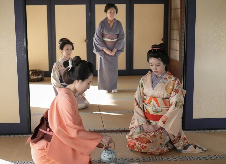当時のお見合いは男性のみで行われ、そこへお嫁さん候補がお茶を出しに行き、少しだけ顔見せします。