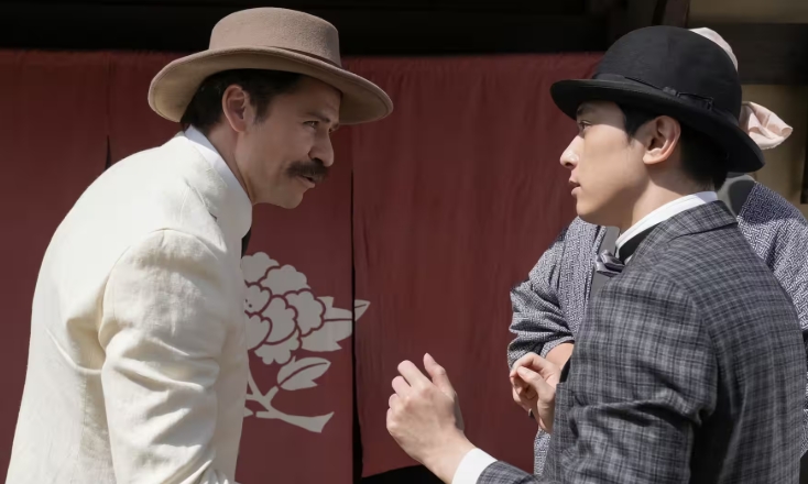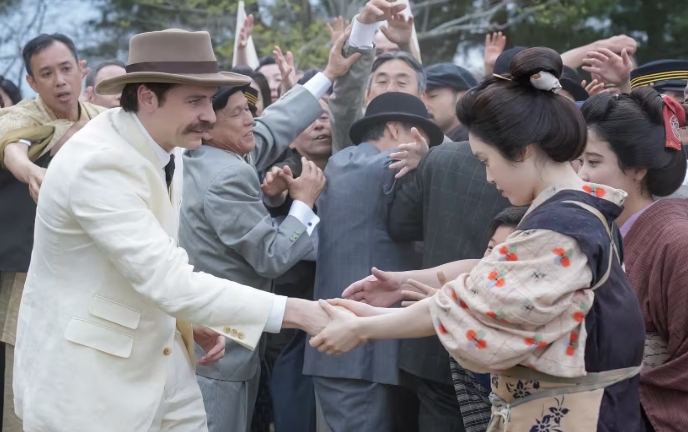 県知事・江藤は、主役不在の歓迎式典になってしまったことに、「異人とはあげなものなんか?」と錦織に聞きます。錦織は「私が東京で出会った西洋人たちに比べると、ずば抜けて風変りと。県知事・江藤は、島根を一流の県にしたい、そのために若者の英語教育、異人の存在が不可欠と力説し、島根の命運を握るヘブンが島根に根ずくかどうかは、錦織にかかっていると言いました。そして「そのために危ない橋をわたってまで、君をここへ呼び出した」と。