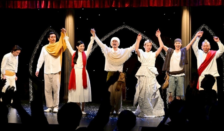 そして「冬物語」がエンディングを迎えようとした時、突然客席から「ちょっと待った~!」と大瀬が飛び出して来たかと思うと、モネ演じるハーマイオニに愛の告白をし客席に賛同を求めました。それに観客たちは「お似合い!」と拍手喝采です。