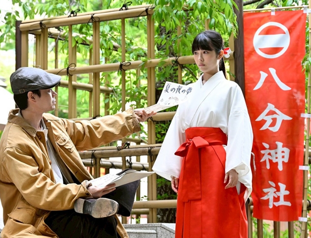 久部はチラシを持って八分神社にやってきました。樹里にチラシを見せ「君の願いは叶った。ストリップはおしまい、シェイクスピアをやる」と言い、シェイクスピアを知っているかとバカにしたように樹里に聞きます。樹里は知っているといいますが、久部は嘘だと言い「一度見ておいて損はない」とチラシを渡しました。
